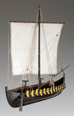 This model represents a Viking ship found in year 1880 near village Gokstad in Norway. The ship was built in second half of ninth century. Excellent nautical ability of the ship was demonstrated in the year 1893 when a replica built by Magnus Anderson took a journey from Norway to USA. Total length of the ship was 24 meters.