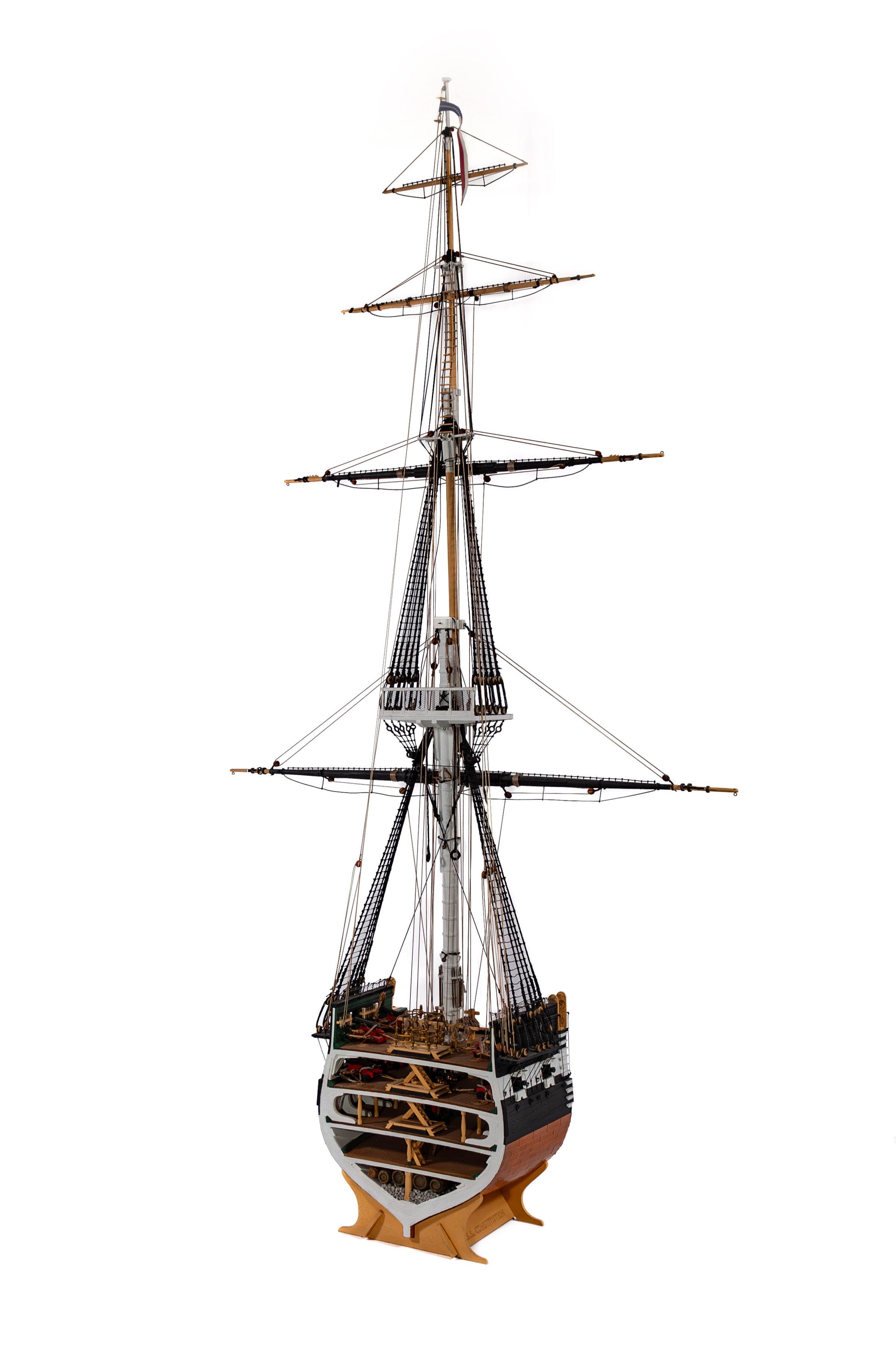 Welcome to what is arguably the most detailed model kit of the USS Constitution ever produced. This version of the kit represents the latest restoration of Old Ironsides now berthed in Boston Harbor. Our kit is entirely built with 5mm bulkhead and false keel plywood framework, then planked in basswood; the modeler's choice of fine-grained hardwood. Fittings are made of cast Brittania metal (lead-free), photo-etched parts, brass strips, brass belaying pins, and walnut blocks, and dead eyes. Rigging is jewelry quality, non-stretch nylon made in Germany and is provided in both light brown and black in 6 sizes to represent scale running and standing rigging. Plans and 96 pages of detailed step by step instructions take you from what appears to be a challenging build to a legacy-satisfying monument to your passion for building beautiful, historically accurate models. A perfect, same scale complement to our MS2040 USS Constitution kit in the scale of 1:76.