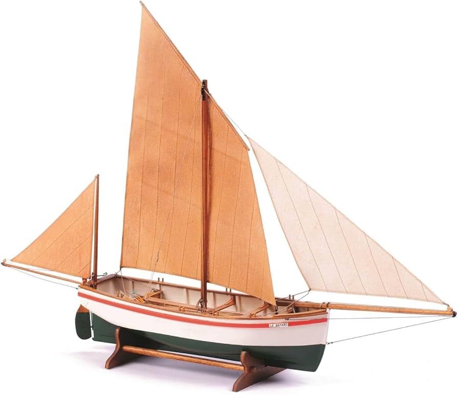 Fishing vessel from Fécamp on the north coast of Normandy. Built around 1850. At that time these boats were used for fishing off Newfoundland. The hulls were raw unvarnished wood and the sails were red-brown in color. In 1878 these boats were replaced by lighter ones.
