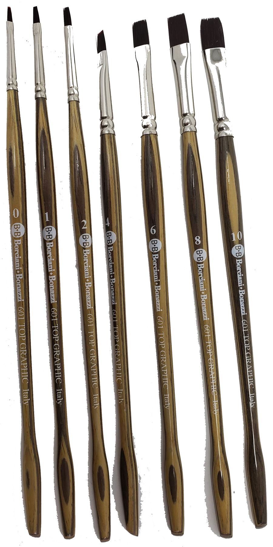 1 Each Borciani Bonazzi 601 Series Flat Wood Brushes No. 0 - 10