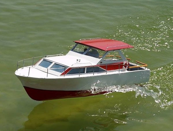 Here is your opportunity to build the pride of the Trojan Yacht Division. The Dumas 31 in. model of the F-31 Trojan Cruiser is a beautiful cabin cruiser that carries distinction when you run her with electric R/C power or build her as the perfect addition to any den or study. She is constructed of rugged die-cut plywood. Included in the kit are numerous detail parts, including a set of 33 cast metal parts, and other decorative items. The Trojan performs beautifully as a radio controlled model. Use either two 2004 6V motors or two 2005 12V motors. For twin screws with props going in the opposite direction use hardware kit 2335.Length 31 inchesBeam 12Scale 1/12th