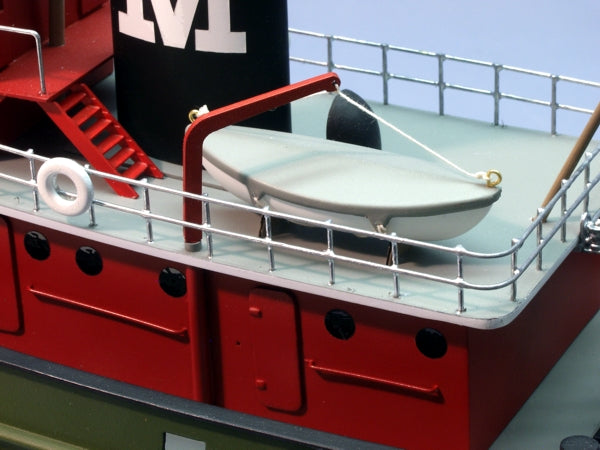 There is something about a relatively small boat pushing or a towing a comparative behemoth. And Dumas is known for their tugs. Whether it be the Shelley Foss, Mister Darby, Brooklyn, or Jersey City, they cover over a century of tugs. With the introduction of the Carol Moran, we have broken into the area of small highly detailed scale RC tugs. The Carol Moran features a two piece vacuum formed hull. The superstructure is constructed of highly conformable diecut expanded PVC. There are detail parts galore including everything from laser cut and cast parts to decals and flag. Just because she is small does not mean you have to give up realism. Best of all, the Carol Moran is a full functioning RC model. All the running hardware is included, and we show you how to power her using a servo from your two channel radio.