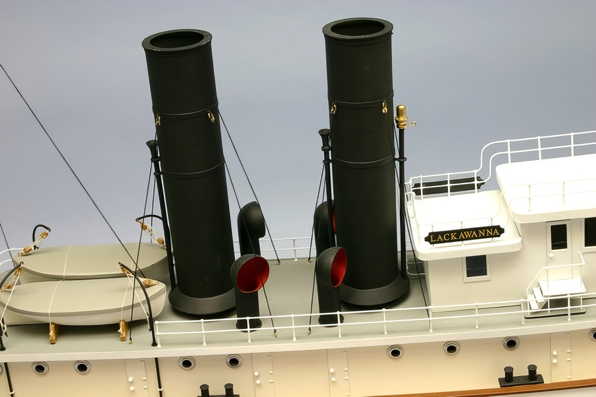 This coastal tug built in 1900 not only burned coal for power but also but also hauled barges filled with coal along the New England coast. The Lackawanna was 137 feet long but her gorgeous sheer and festive air made her appear almost yacht like. Our 33 inch model of the Lackawanna captures all the beautiful lines of this classic tug.
