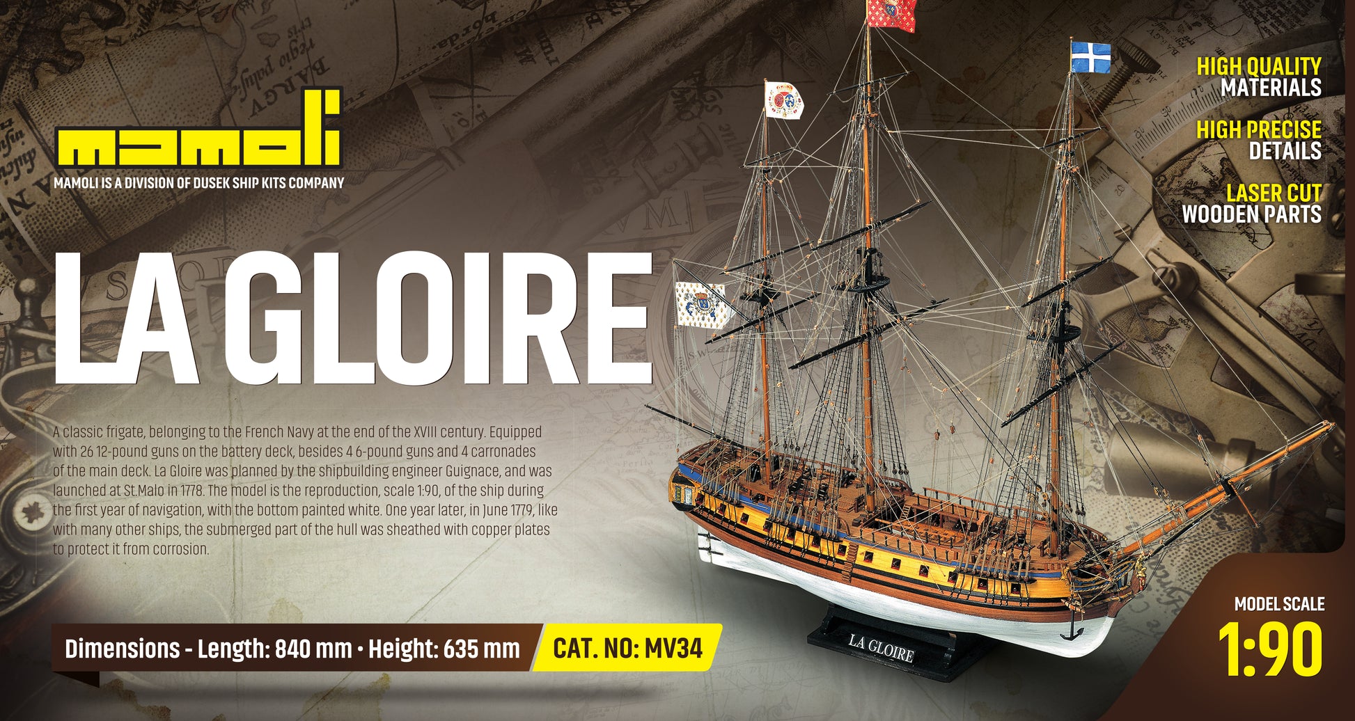 Dusek-Mamoli - Mamoli MV34 - La Gloire - Wood Plank-On-Frame Model Ship Kit - Scale 1/64 - Length 840 mm (34")
