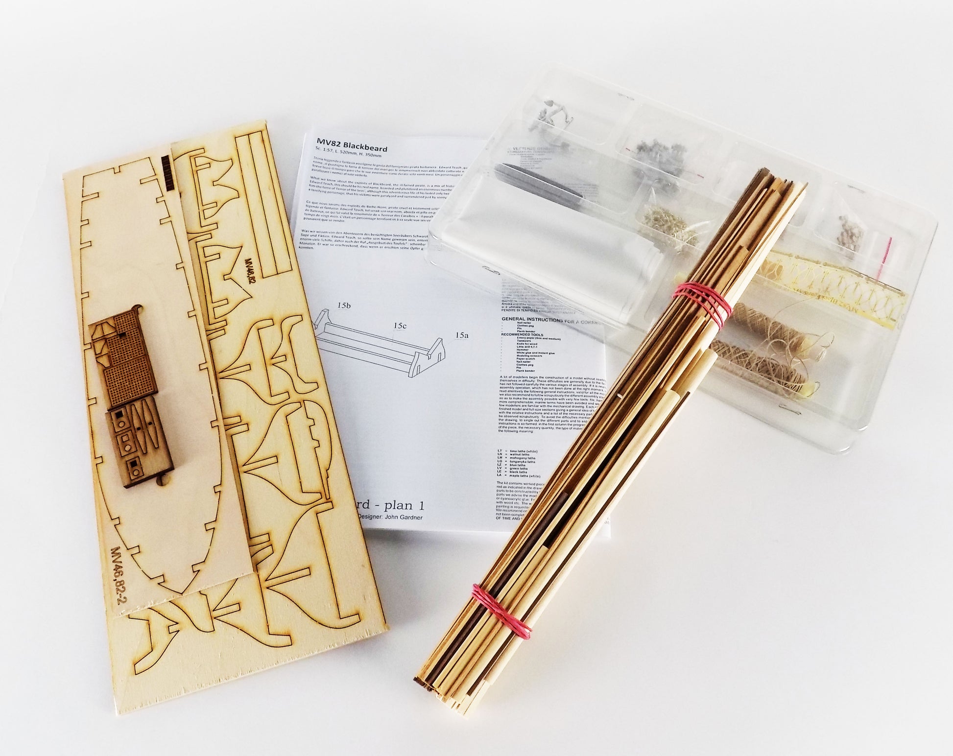 Dusek-Mamoli - Mamoli MV82 - Blackbeard - Wood Plank-On-Frame Ship Model Kit - Length: 520 mm (21"), Height: 350 mm (14") Scale 1/57