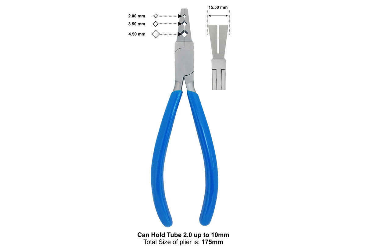 - Pliers will hold tubing from 2.0 up to 10 millimeters in diameter