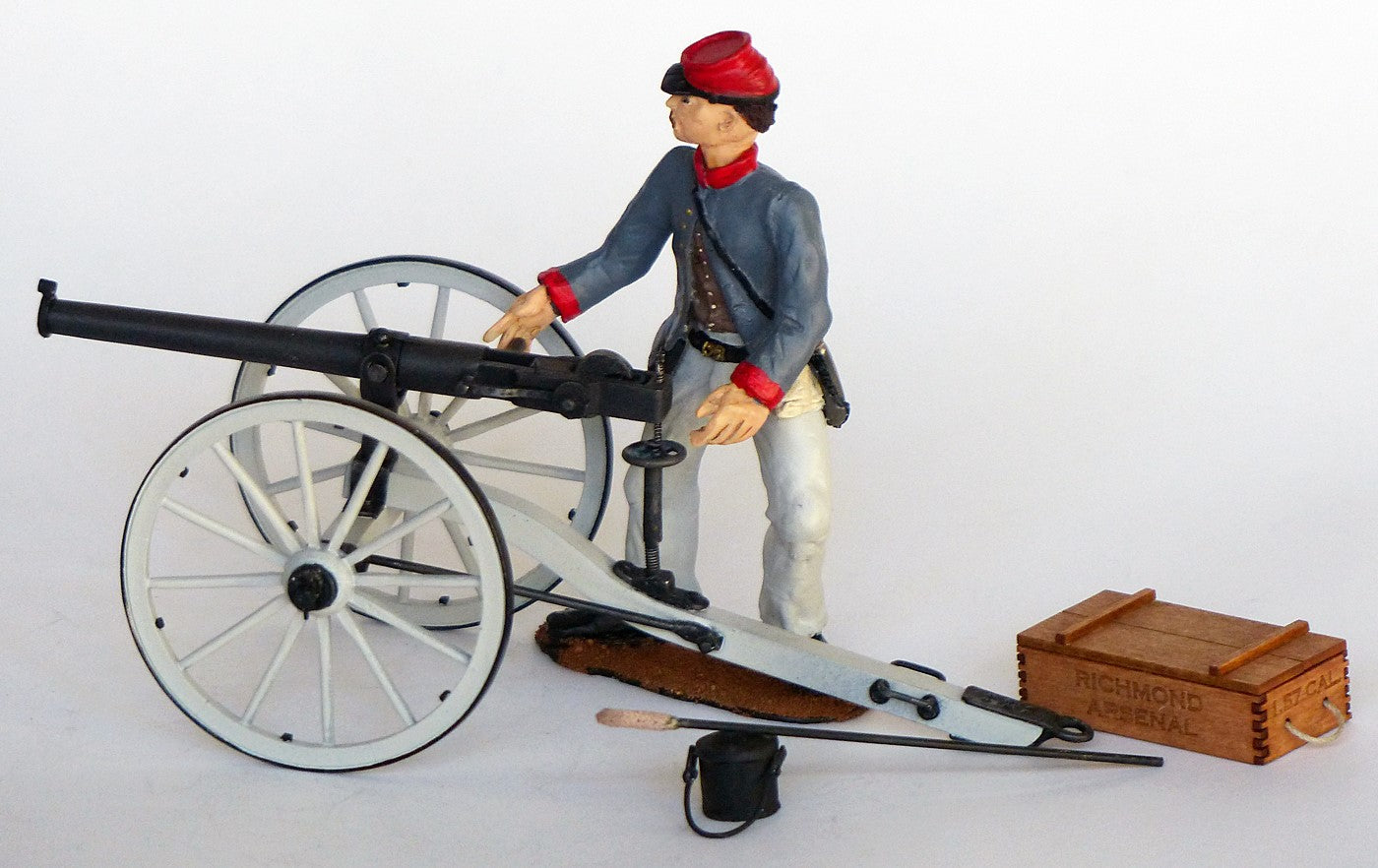 Designed for the Confederacy by Captain D.R. Williams of Covington, Kentucky, this rapid-fire breech-loading gun was classified as a 1-lb cannon. Turning the hand crank opened the sliding breech, allowing the three-man crew to load a round and cap the primer. The continuing crank movement closed the breech and released the hammer. The projectile tumbled as it flew, adding a terrifying scream to the destruction it portended.