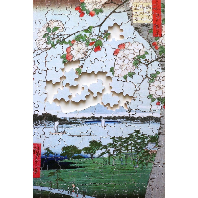 Ando or Utagawa Hiroshige is with Hokusai the most famous artist who made Japanese prints. This work is part of the series of 100 views of Edo in Japan, which has the particularity of including many vertical prints. In this one we discover a spring view of the landscapes surrounding the Sumida River which crosses Tokyo.