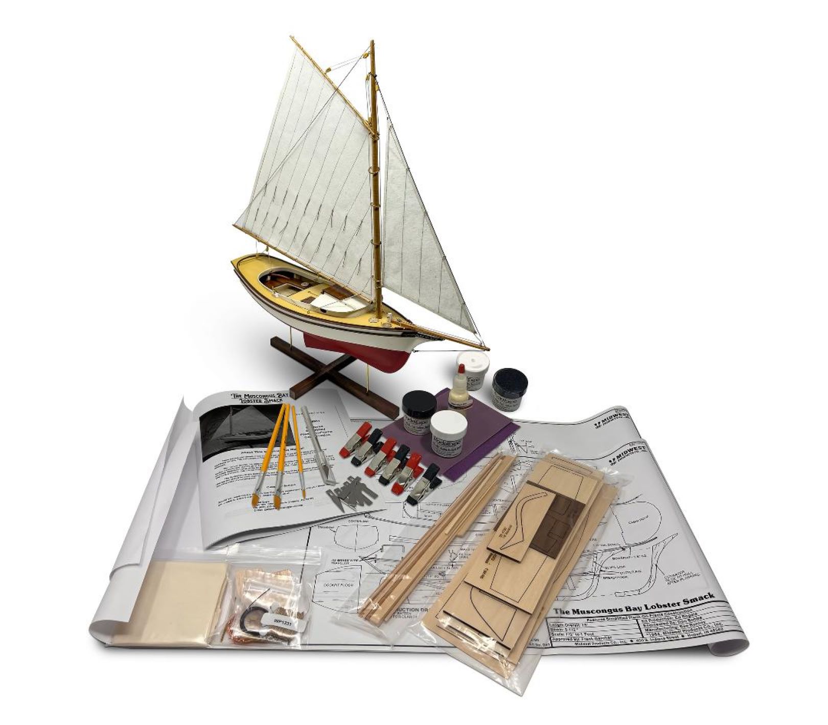 Midwest - Muscongus Bay Lobster Smack 1:24 + Complete set of Tools, Paint and Glue
