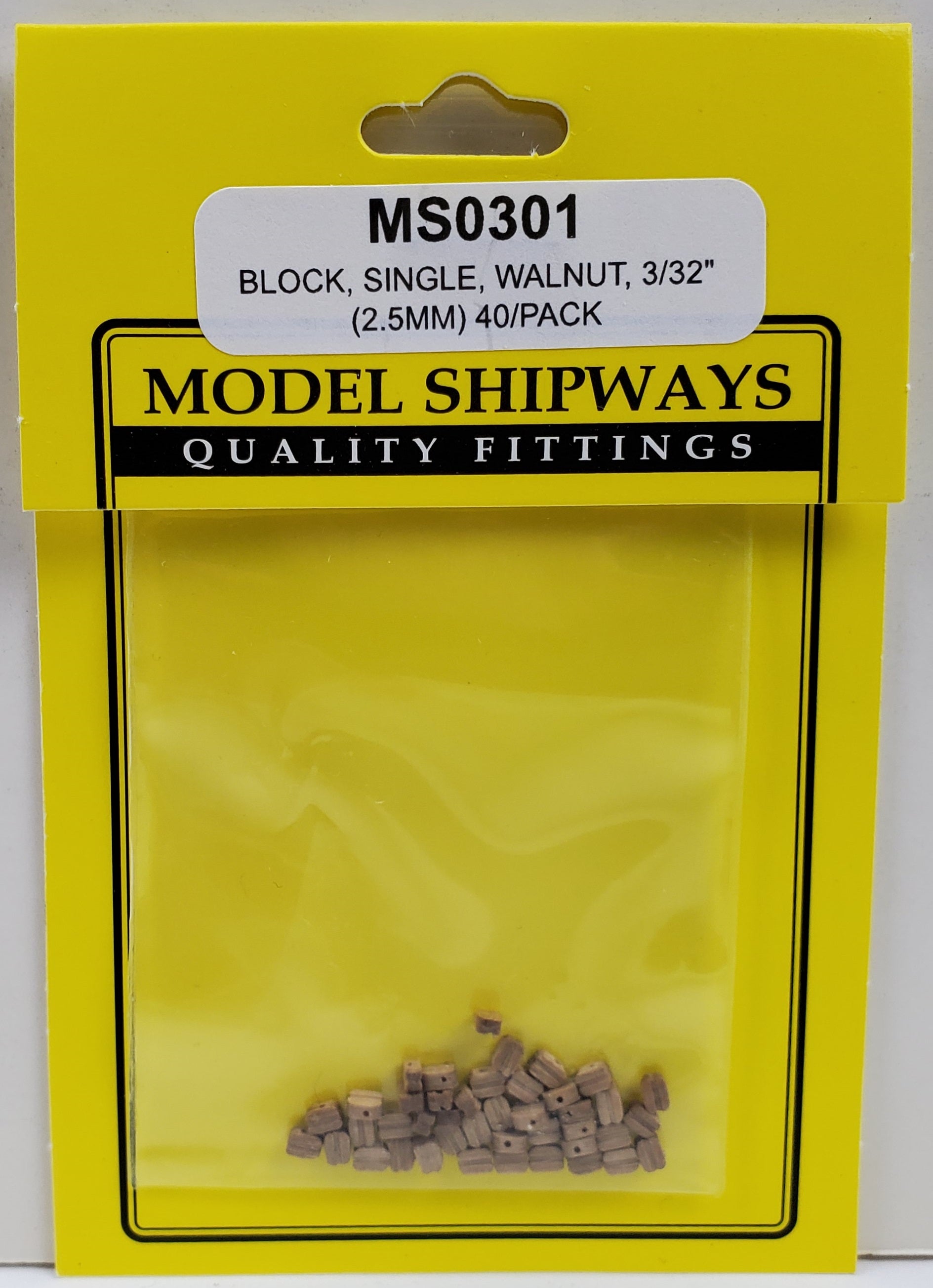 Model Shipways Single Sheave Block, Walnut 3/32" (2.5mm) 40 pack