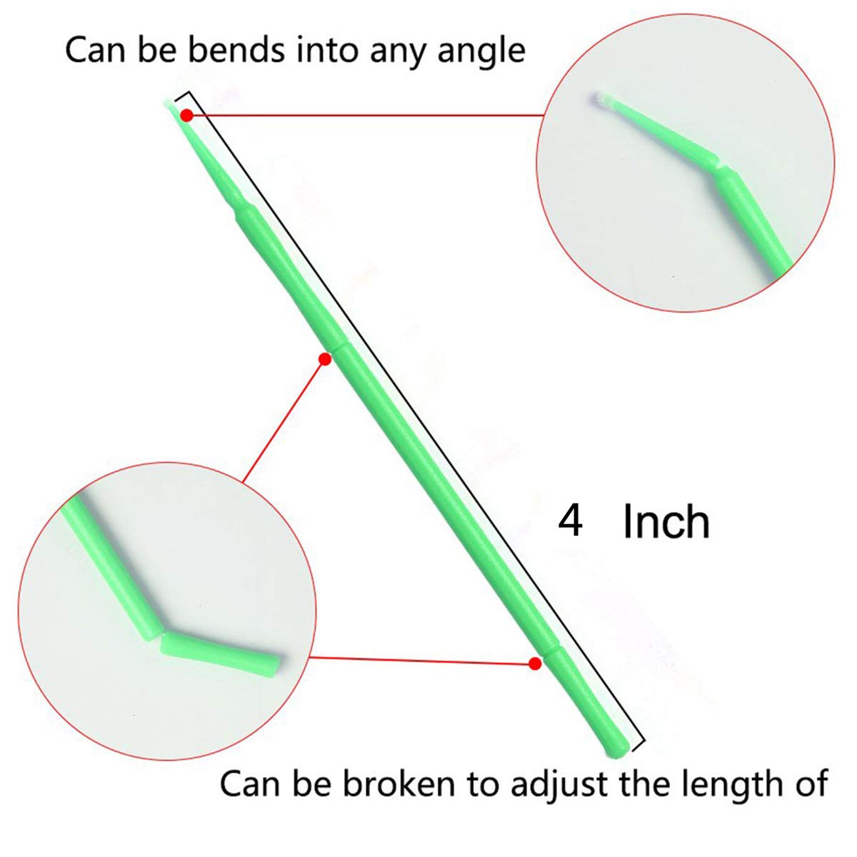 - Micro brush handle can be broken to adjust the length. Tips can be bend into any angle for the placement of small controlled amounts of material in limited access areas.
