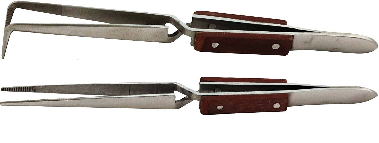 The Tweezer set with Fiber Grip are ideal for soldering, picking up stones, beads, rocks, and other small items. They are made of stainless steel.