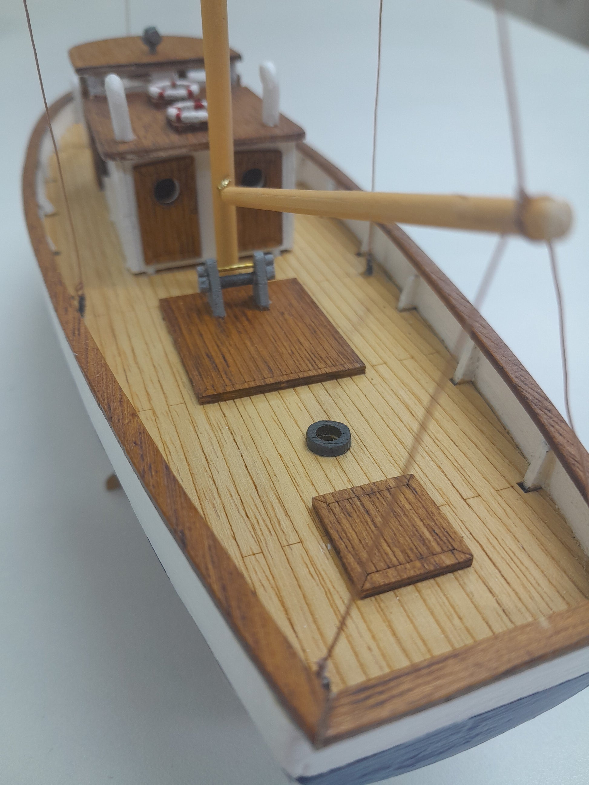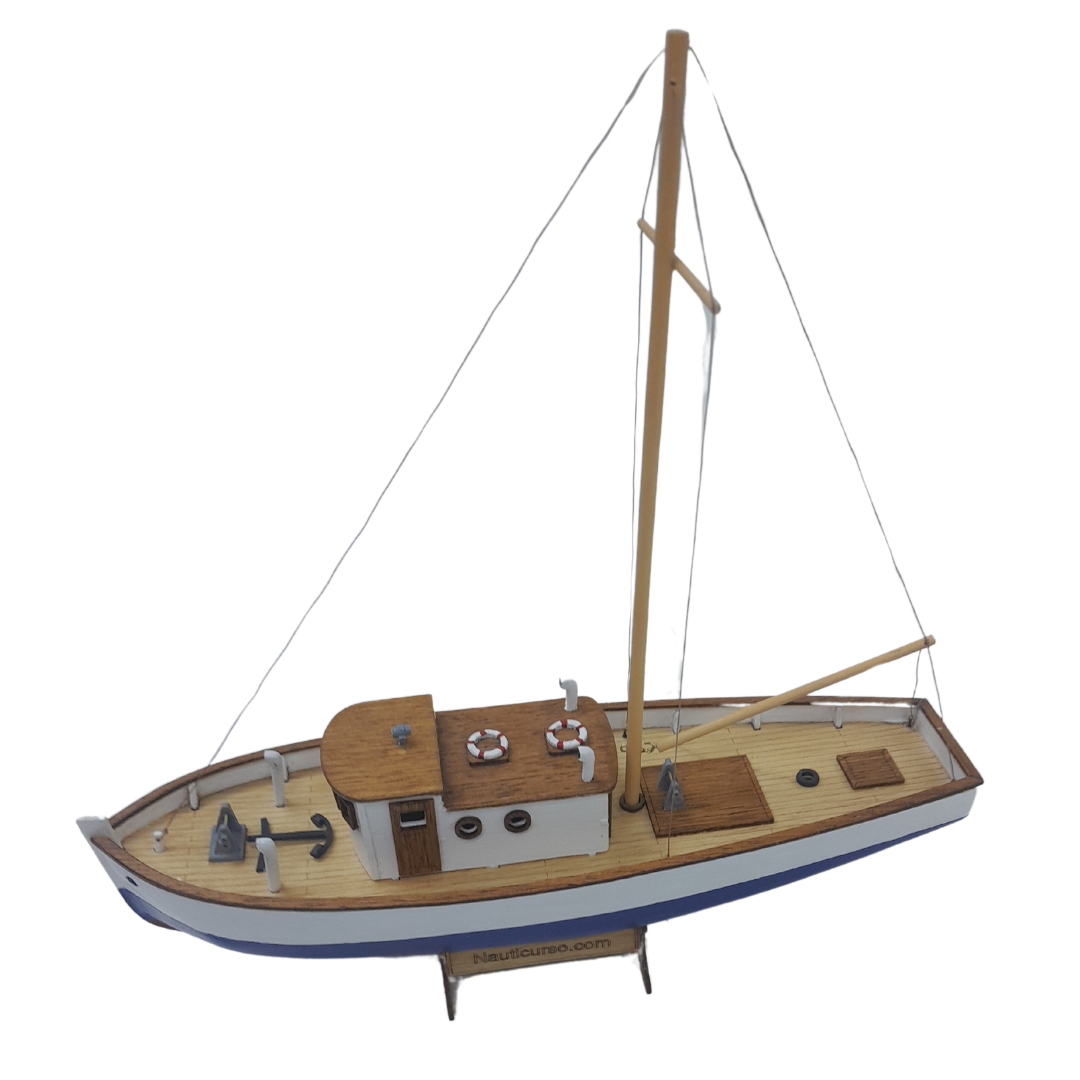 All laser-cut and laser-etched wood parts and rigging are included in this kit.