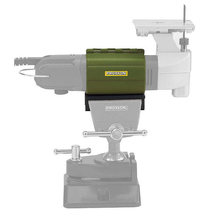 For stationary use of MICROMOT hand-held tools. Whenever working free hand is difficult or dangerous, here is the solution for the stationary use of MICROMOT hand-held tools. With a tough fiberglass reinforced construction, this tool clamp perfectly fits around the body of our hand-held tools with aluminum-die cast head such as Professional Rotary Tool IBS/E, Longneck Angle Grinder LHW/E, Belt Sander BS/E and Detail Sander OZI/E as well as our Jig Saws STS 12/E and STS/E. The tool clamp is easily clamped via two flaps in a vice (we recommend our Precision Vice FMS 75 or Precision Vice with Clamp FMZ).