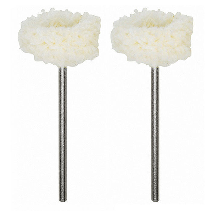 Cotton buffing. Used with polishing compound for high gloss polishing of metal, non-ferrous metal, ceramics, porcelain. Also for polishing of plastics and lacquered woods. All shanks Ø 3/32" (2.35mm).