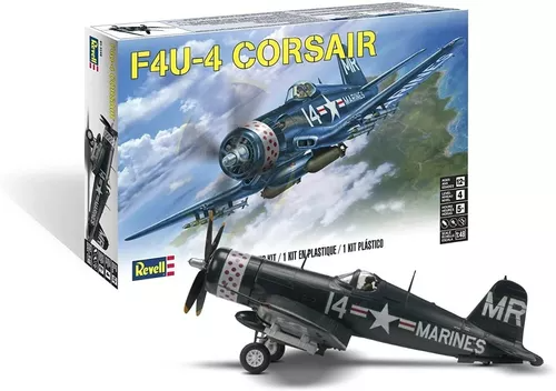 Fold-out wings, retractable landing gear and retractable doors.Three external drop tanks as optional armament, two 1000-pound bombs and eight missiles under the wingsIncludes decals for VMF-214 "Black Sheep" Squadron USS Sicily 1951 and VMA-332 USS Bairoko 1953Molded from light gray and translucent material