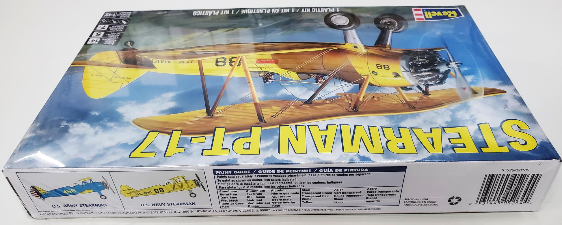 Stearman aircraft are twin-seat biplanes first built in the mid-1930s and popularized by their use as a trainer for military pilots. Thousands of these aircraft rolled off assembly lines and introduced American pilots to the fundamentals of being a pilot. When the war ended, thousands of surplus trainers went on to do every civilian job from crop dusting to barn-storming aerobatics. Ease of maintenance and great handling made them popular wherever they went. Kit features a full interior sub frame, fixed support struts and landing gear plus a detailed multi-part engine.
