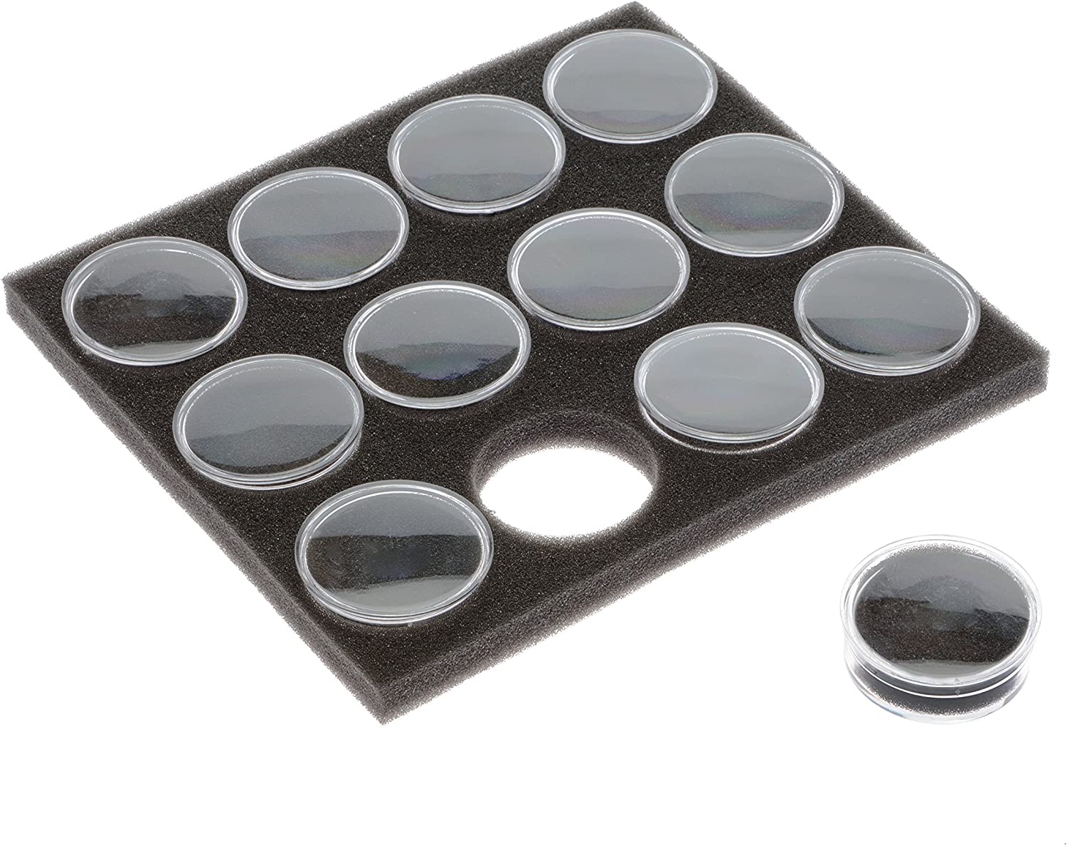 These display boxes are clear-colored and round-shaped, making it easy to identify and display sewing and craft supplies, nuts, bolts, buttons, and so much more. These 12 containers come in a foam holder to keep them organized and well-preserved for long-lasting use.