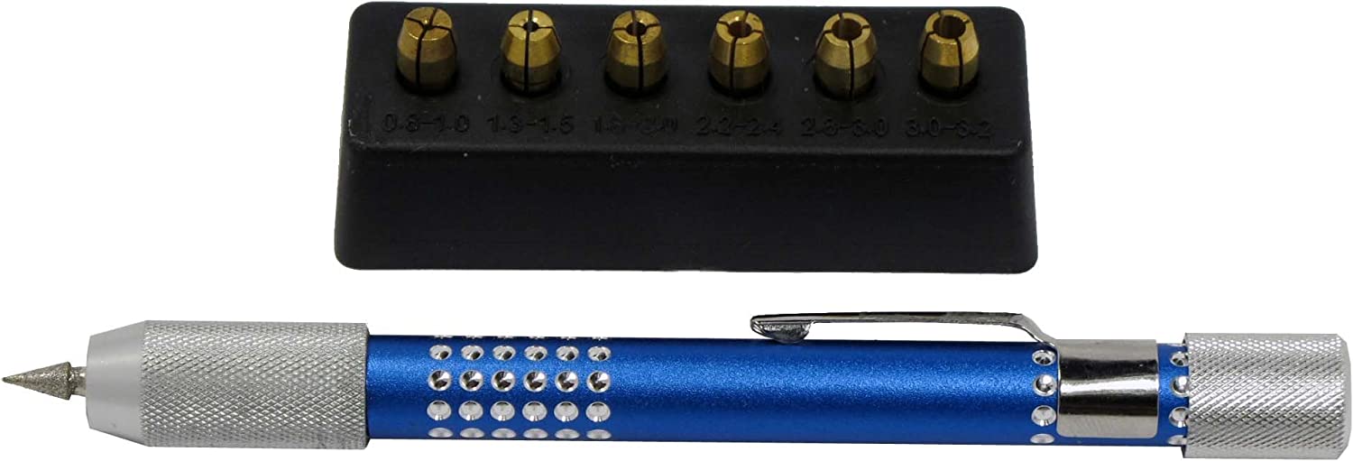 The handle length is 4-3/4” and it is ideal for hardware, home, hobbyists, jewelers, machinists, the everyday user, and more. You can mark soft metals with the diamond bit attached to the diamond burr holding collet pen with the aluminum handle. This product also includes a storage case labeled with six different sizes to keep your brass collets organized.
