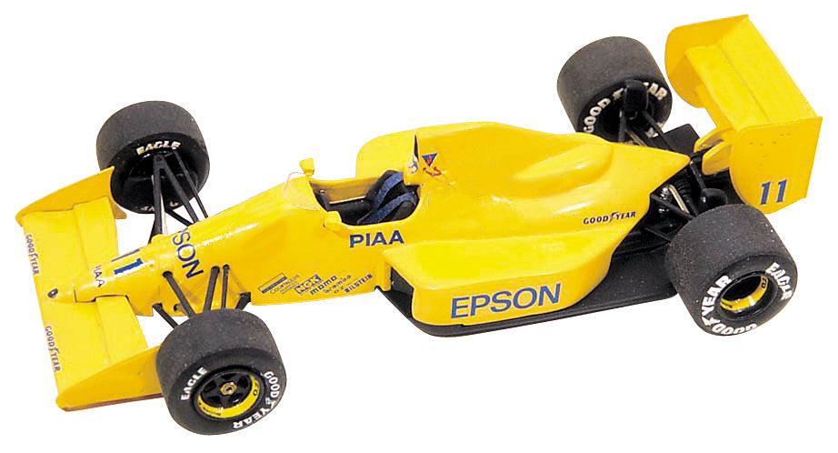 This kit is a replica of the Lotus Judd - driven by Nelson Piquet in car #11 & satoru Nakajima in Car #12 at the Brazilian F1 Grand Prix in 1989 . This kit has approximately 150 parts that are produced with the most varied types of materials. The body, the bottom part and the main components of the model are all cast in white metal, whilst the other parts are produced using photoengraved metal. The smallest parts are produced by using the micro turner process. The tires are made using real rubber. A full color instruction sheet is supplied with the kit, together with a collection of photographs of the original racing car.