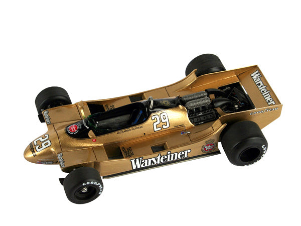 This white metal kit is a replica of a Arrows A2 Ford Cosworth race car driven by Riccardo Patrese in car #29 & Jochen Mass in car #30 in the 1979 French Grand Prix. Kit includes photo etched parts, decals and instructions. Photos of the actual car are shown still sealed in the clear plastic packaging and may not be clear. must be completely assembled. Kit weighs 5 oz.