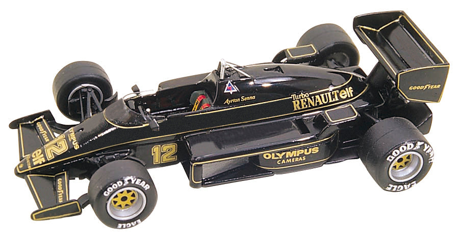 Formula 1 Lotus T97 1985, NIB, made in Italy. This beautiful Tameo car kit is still new in the box. This kit is a replica of the Lotus T97 driven by Ayrton Senna in car # 12 & Elio De Angelis in car # 11 at the Portuguese Grand Prix in 1985. This kit has approximately 150 parts that are produced with the most varied types of materials. The body, the bottom part and the main components of the model are all cast in white metal, whilst the other parts are produced using photoengraved metal. The smallest parts are produced by using the micro turner process. The tires are made using real rubber. A full color instruction sheet is supplied with the kit, together with a collection of photographs of the original racing car.