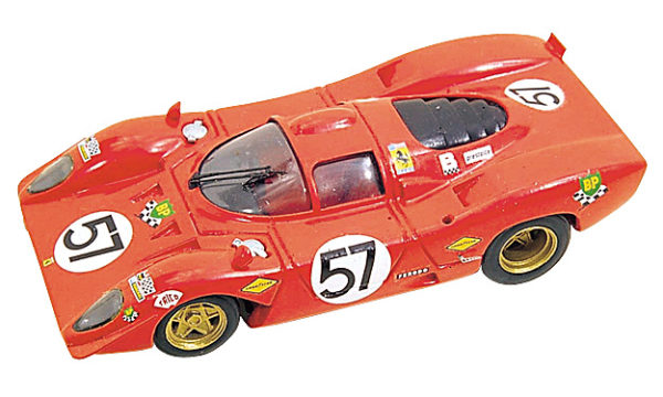 Ferrari 312P 1970 LeMans, NIB, made in Italy. This beautiful Tameo car kit is still new in the box. This kit is a replica of the Ferrari 312P driven by Chuck Parsons & Tony Adamowicz in Car #57, at the 24 hours of LeMans in 1970. This kit has approximately 150 parts that are produced with the most varied types of materials. The body, the bottom part and the main components of the model are all cast in white metal, whilst the other parts are produced using photoengraved metal. The smallest parts are produced by using the micro turner process. The tires are made using real rubber. A full color instruction sheet is supplied with the kit, together with a collection of photographs of the original racing car.