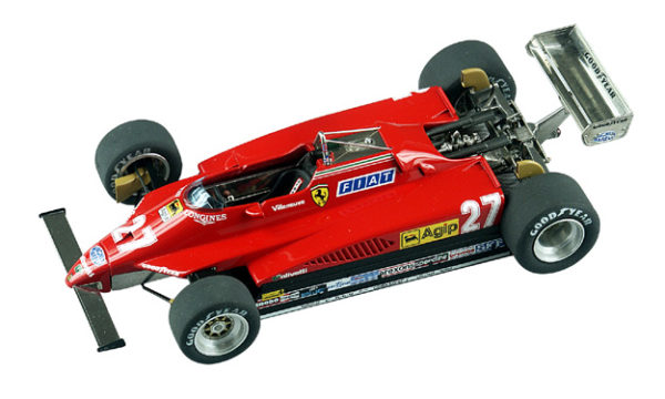 Formula 1 Ferrari 126 C2 - 1982 - NIB, made in Italy. This beautiful Tameo car kit is still new in the box. This kit is a replica of the Ferrari 126 C2 - driven by Gilles Villeneuve in car #27 & Didier Pironi in car #28 at the Belgian Grand Prix in 1982. This kit has approximately 150 parts that are produced with the most varied types of materials. The body, the bottom part and the main components of the model are all cast in white metal, whilst the other parts are produced using photoengraved metal. The smallest parts are produced by using the micro turner process. The tires are made using real rubber. A full color instruction sheet is supplied with the kit, together with a collection of photographs of the original racing car, as well as a double set of transfer decals.