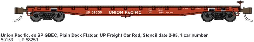 Wheels Of Time - N 53'6'Plain Deck Flatcar UP 58259